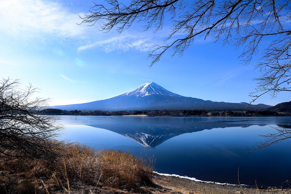 空気が澄んでいる冬は、この絶景が一層際立ち、風がない日には湖面に逆さ富士が現れるチャンスもあります。