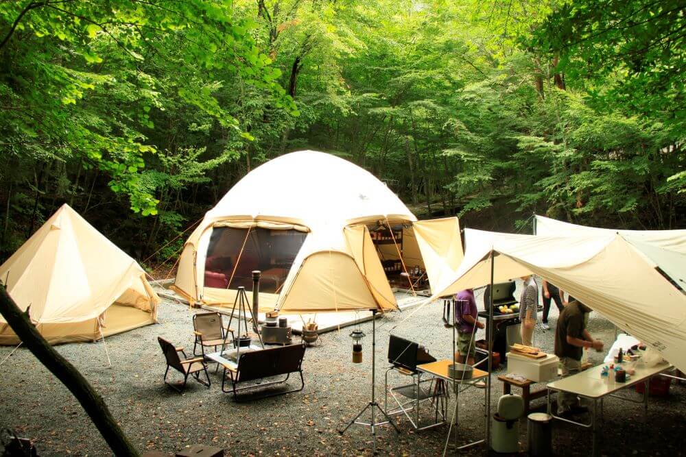 最初にご紹介するのは、富士五湖の1つ、西湖の湖畔にあるキャンプ場「西湖キャンプビレッジノーム」です。静かな湖畔や落ち着いた雰囲気の林間にテントサイトが設けられており、のんびりとしたひと時を過ごすことができます。