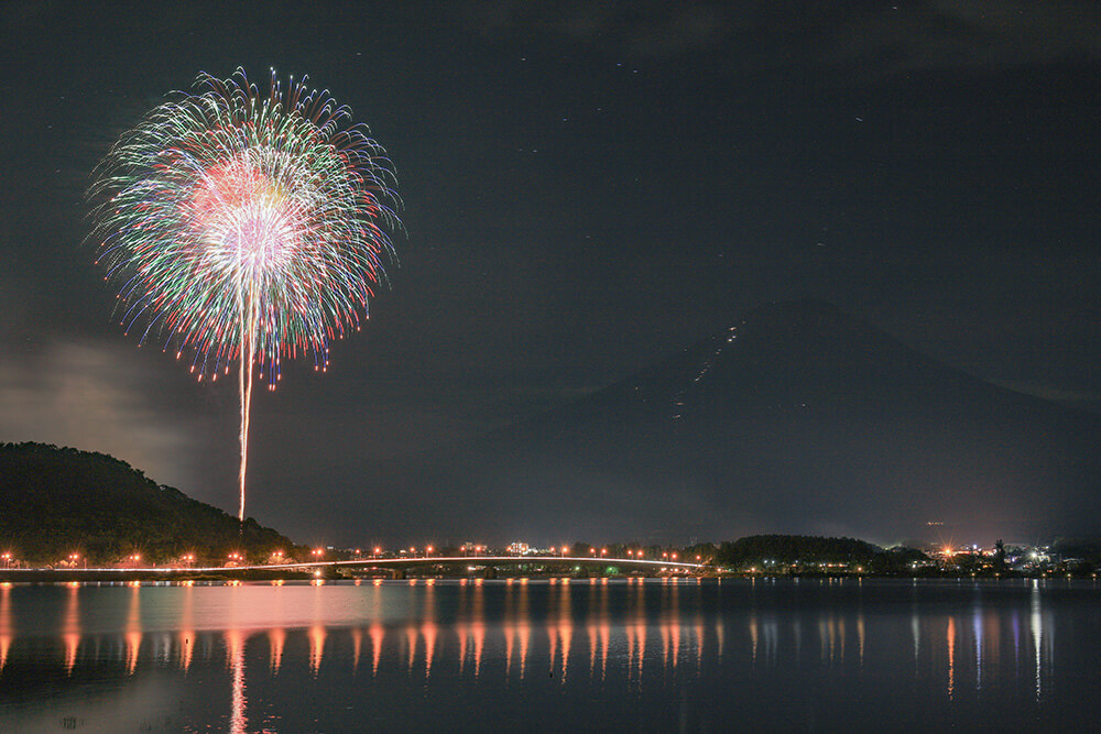 富士山の山開きを記念して、7月上旬に河口湖畔の大池公園をメイン会場とした花火大会が開かれます。河口湖では「河口湖冬花火」や「河口湖湖上祭」など花火大会が多く開かれますが、この山開きまつり花火大会は混雑も少なく落ち着いて花火を鑑賞できる穴場のイベントです。