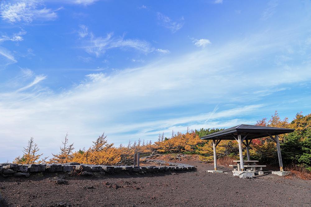 三湖台・五湖台方面へ進む際の出発地点としても便利で、トレッキング前後に立ち寄れば快適に行動できます。絶景と休憩の両方を兼ね備えた、紅葉ハイキングには欠かせないポイントです。