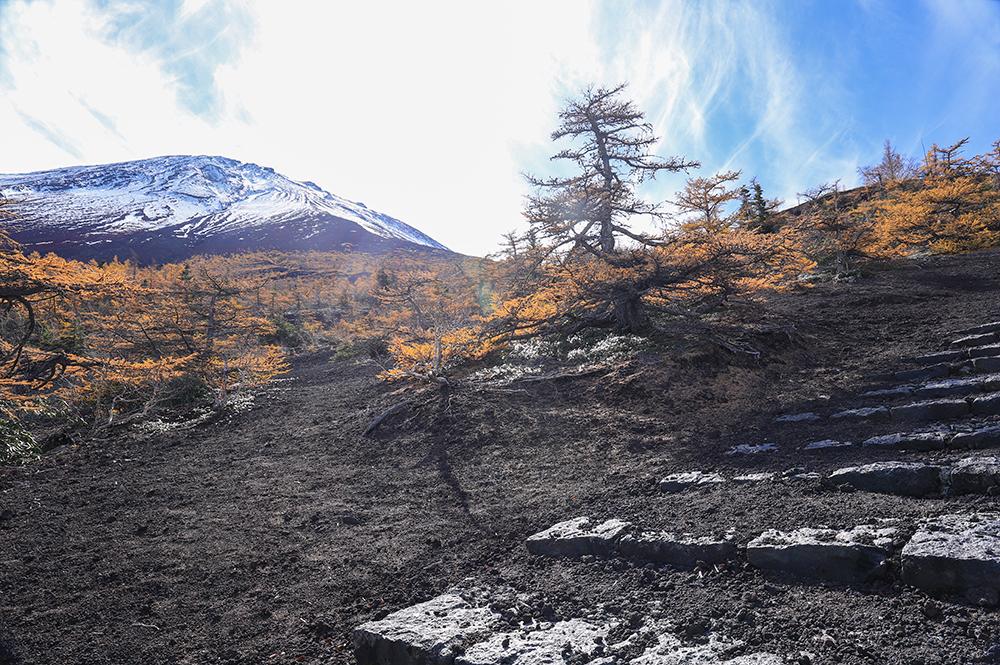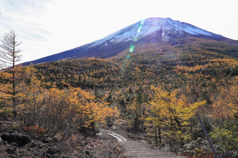 富士山五合目はアクセスが良く、マイカー規制のない季節は車の通行も可能です。比較的短時間で歩けるハイキングコースも整備されており、初心者や観光目的の旅行者でも安心して紅葉ハイキングを楽しめます。