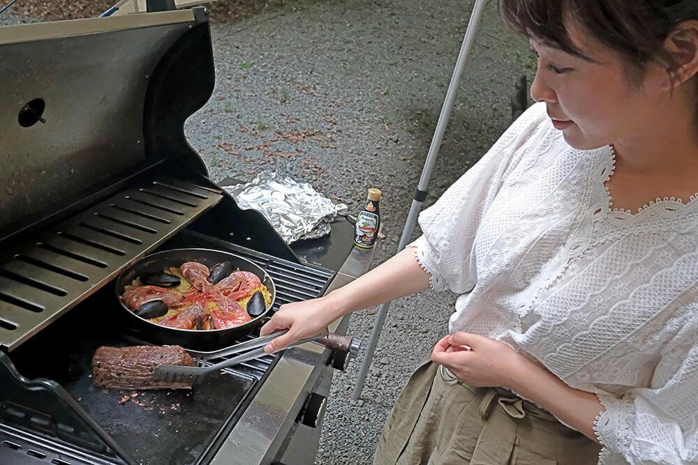 でも難しいことはほとんどありません。例えば食事の用意で面倒な火起こしも、キャンプ用のガスコンロに加えて、火力が強く、オーブンにもなるとというグリルまでありますし、ちゃんと電気が来ていますので、テントの中などは普通に電気のライトが付きます。(スマホの充電ももちろん出来ます)