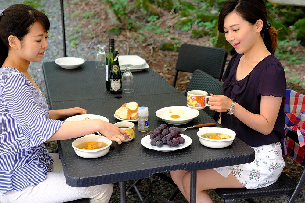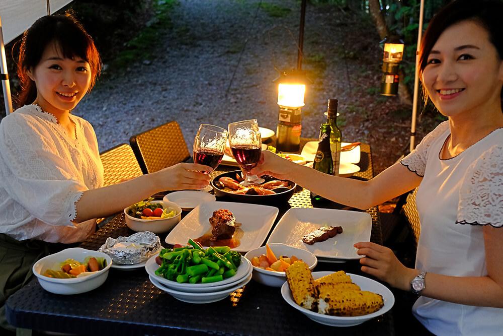 - 19時夕食 キャンプなのに優雅にご飯がいただけます!!周りに虫が少ないので、虫が嫌いな女子でもOK!!