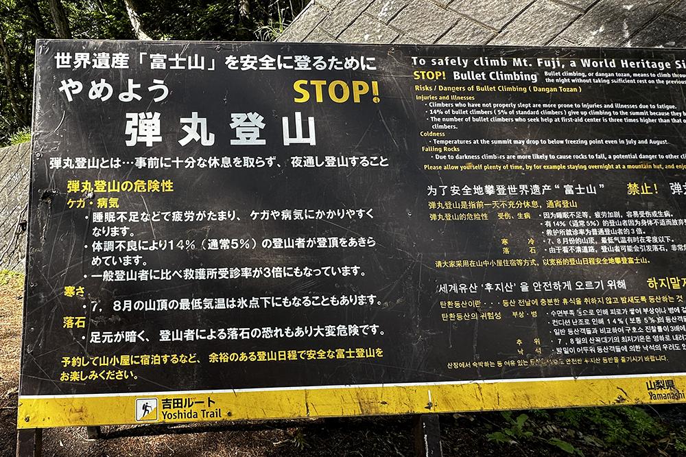 山小屋を予約せず、徹夜で登山する「弾丸登山」は禁止されています。