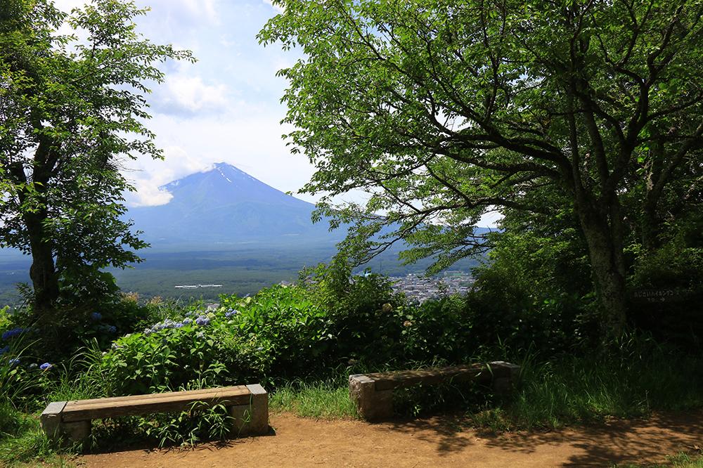 山頂からは富士山と河口湖を見渡すことができ、観光スポット・絶景スポットとしても非常に人気があります。