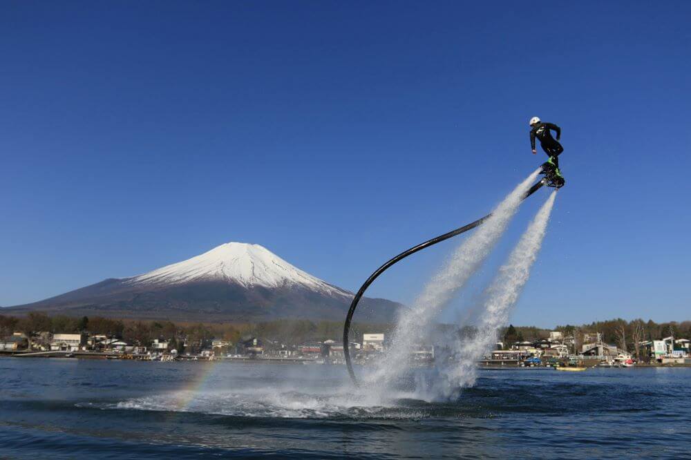 山中湖でも、本栖湖と同様に様々なウォータースポーツが楽しめます。山中湖で体験できるアクティビティの中で特におすすめなのが「フライボード」です。足の裏のフライボードから勢いよく水を噴射し、空中に飛び上がるアクティビティ。軽快な空の旅を楽しむことができます。見た目がとても派手なので、写真映えしますよ。