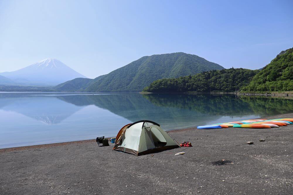 精進湖のそばにあるキャンプ場「キャンプあかいけ」では、キャンプ場利用者にカナディアンカヌーとカヤックの貸し出しを行っており、精進湖でカヌー・カヤック体験ができます。