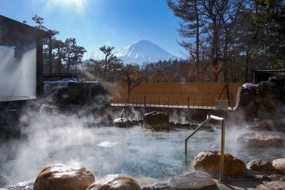 道の駅なるさわの隣にある「富士眺望の湯ゆらり」は、16種類のバラエティ豊かなお風呂が楽しめる日帰り温泉施設です。富士山の眺望が自慢の露天風呂をはじめ、洞窟風呂や炭酸泉などユニークな内湯もそろい、湯舟めぐりを楽しめますよ。