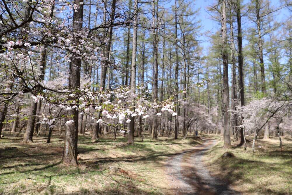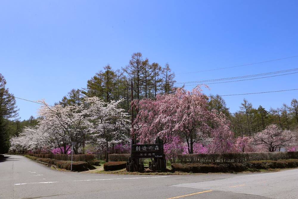 富士河口湖町にある創造の森もフジザクラの鑑賞スポットとして有名です。富士山の眺望が良いため、富士山をバックに淡いピンクのフジザクラを見ることができます。
