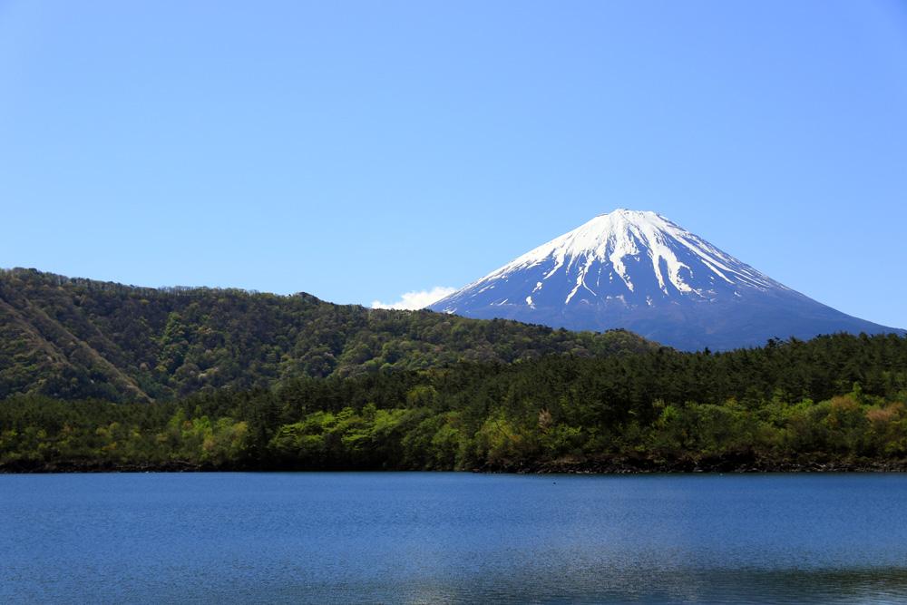 西湖方面を選ぶと、湖畔の根場浜まで到達でき、ゴール地点から望む湖越しの富士山の眺めが最高です。