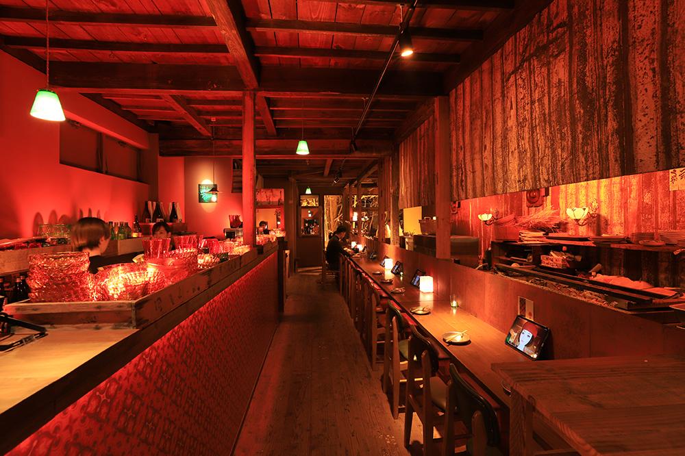 赤い照明で照らされた店内には、インドネシアから輸入したトタンが壁に張られていたり、オーナー自らが収集したアンティークな食器が並べられており、細部にまでこだわりが詰まっています。