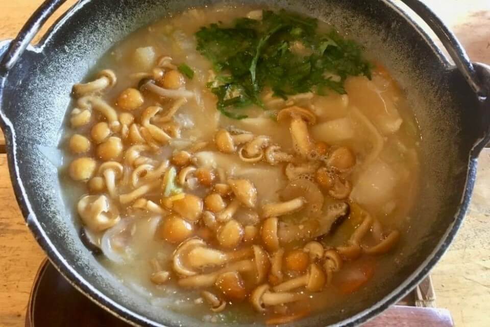 御坂峠にあるほうとうのお店「天下茶屋」。文豪・太宰治が滞在したこともあるという歴史あるお店で、太宰が愛したほうとうをいただくことができます。おすすめはきのこほうとう。たっぷりのきのこと野菜、自家製麺を地みそのスープで煮込んだ味わい深い一品です。