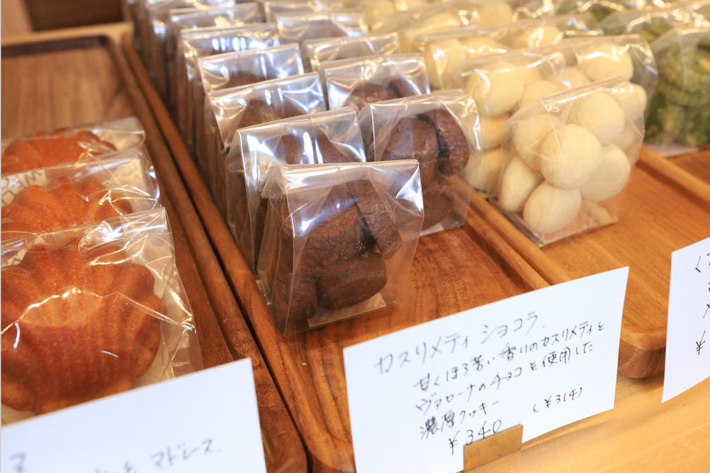 クッキーやマドレーヌ、フィナンシェなど1年を通して味わうことができる定番商品のほか、季節の果物や仕入れ状況によってかわるタルトやパウンドケーキを購入することができます。