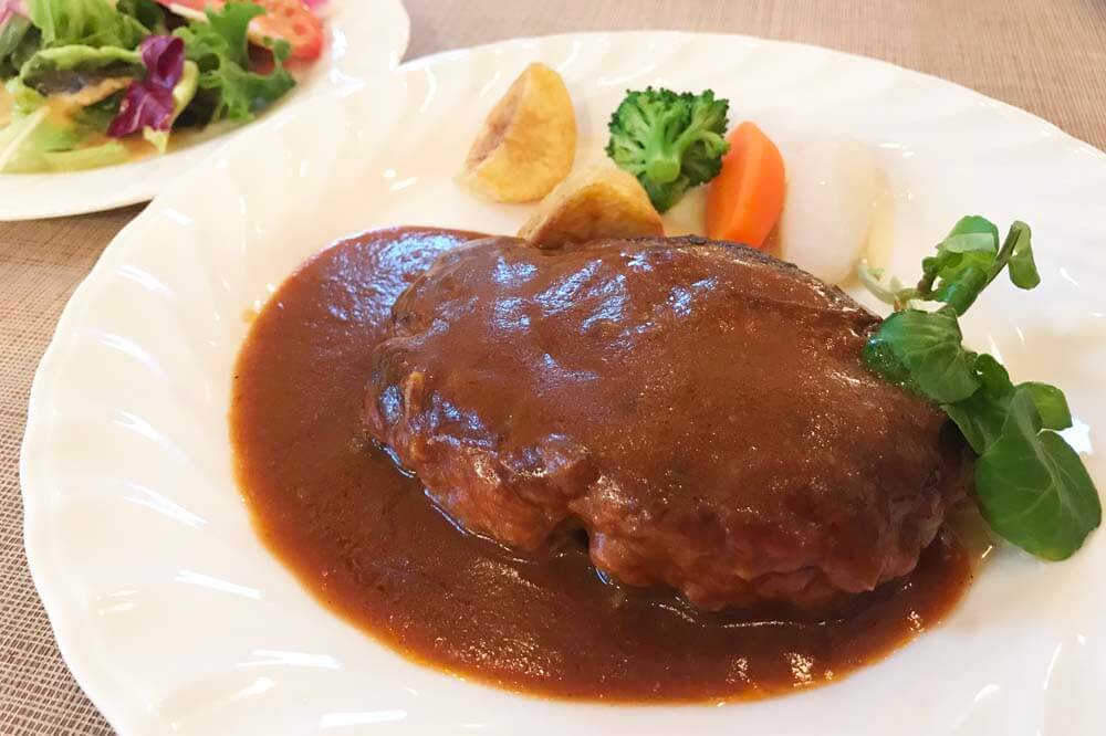 緑に囲まれた落ち着いた雰囲気の隠れ家的なこちらのレストランでは、ハンバーグステーキの他、特製ビーフシチューやドリア、パスタなどがいただけます。ランチでいただける「ハンバーグステーキ~デミソース~」はこだわりのデミソースとあふれ出る肉汁の旨味が口の中に広がる逸品。優しく上品な味わいのハンバーグは、しつこくなく女性や年配の方にもおススメです。