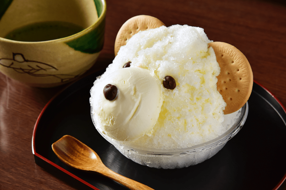 練乳かき氷とバニラアイスクリームからできる「白くまかき氷」は女性やお子様に大人気です。