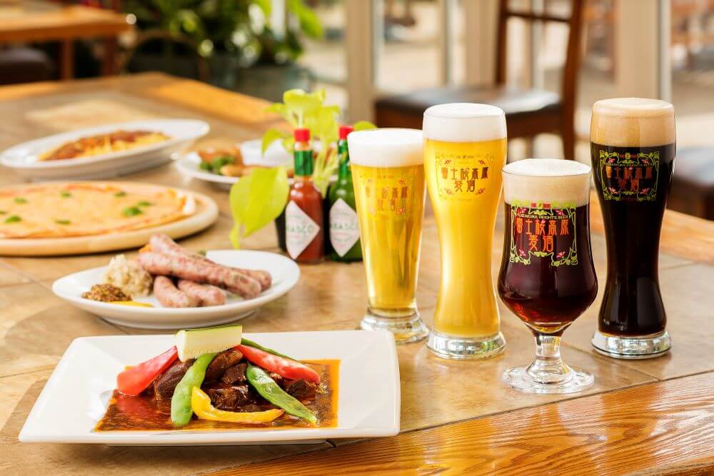「富士桜高原麦酒」は、女性にも飲みやすいフルーティーな「ヴァイツェン」や珍しい燻製ビール「ラオホ」など定番ビールが全部で4種類楽しめます。