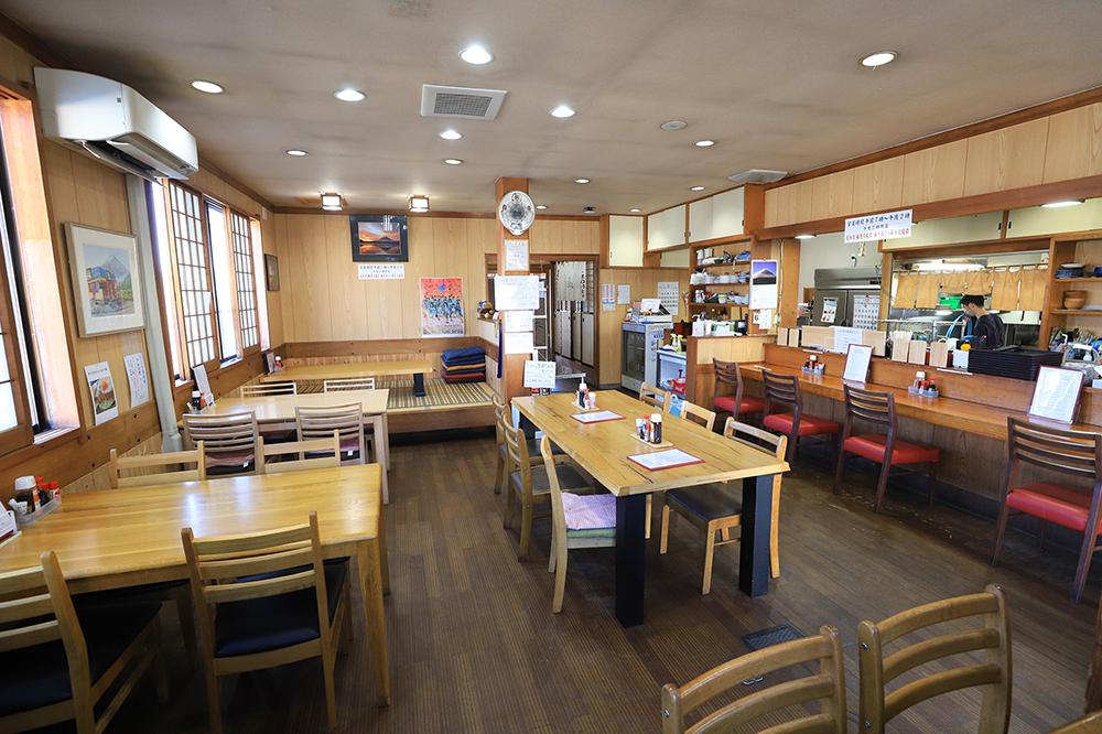昔ながらの食堂の雰囲気が漂う店内にはカウンター席とテーブル席のほか、ワンちゃんと一緒に食事ができるお座敷があり、愛犬家からも人気を集めています。