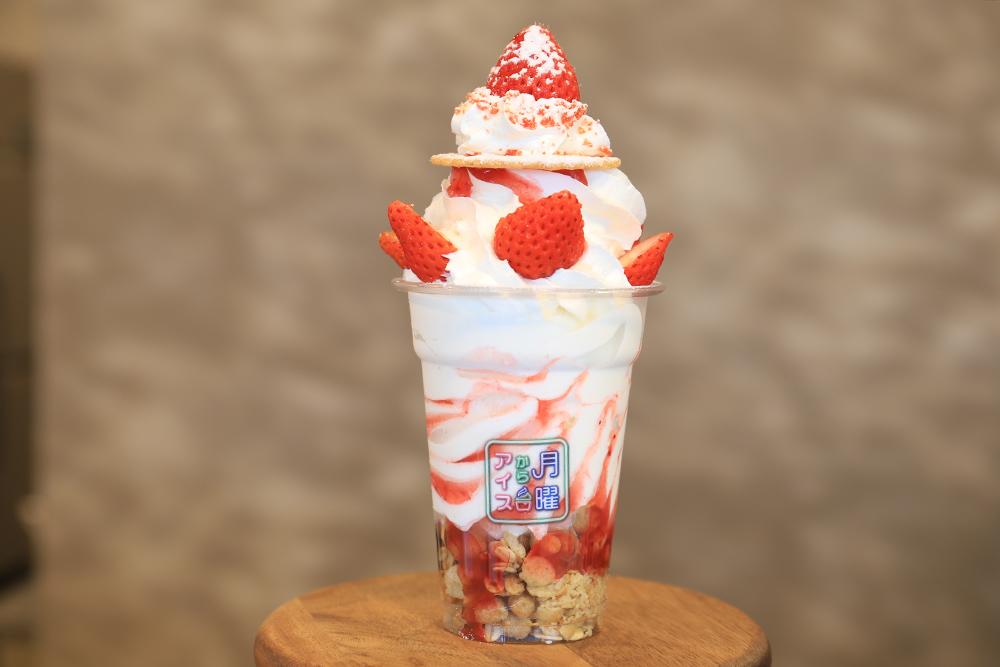 「夜アイス専門店 月曜からアイス富士河口湖店」は、夜の街をドライブする時間がさらに楽しくワクワクする時間になるように、また、週初めの憂鬱な気分がHappyな気分になるようにという想いが込められたアイスクリーム専門店です。