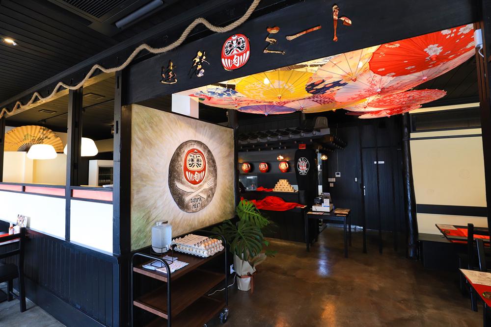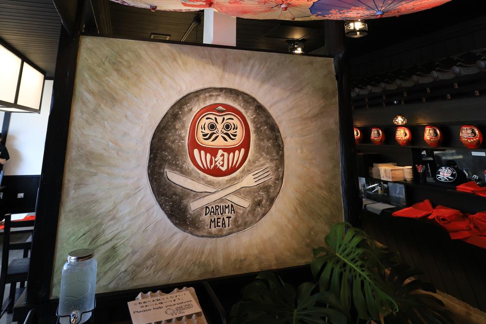 お店に入ってすぐ目に飛び込んでくるこのだるまの絵は、全国左官技能技術大会で優勝されたオーナーの友人が手掛けたもの。富士山を真上から見下ろした様をイメージして作成されたそうです。