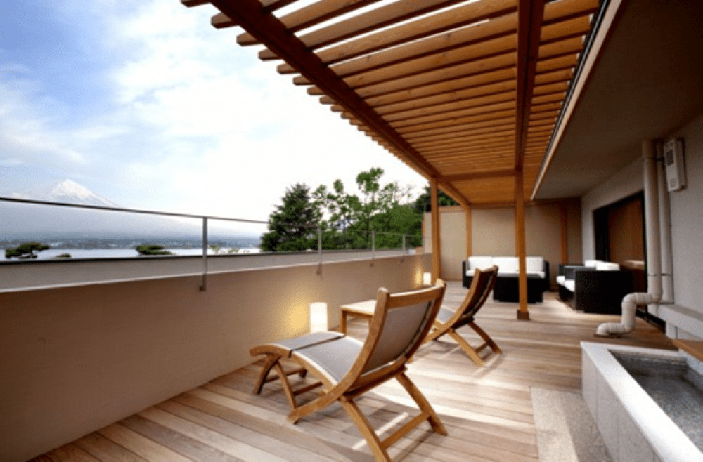 そして豊かな自然と富士山を望むデッキテラスには露天風呂があり、好きな時間にいつでも富士山を見ながら温泉を堪能することができます。
