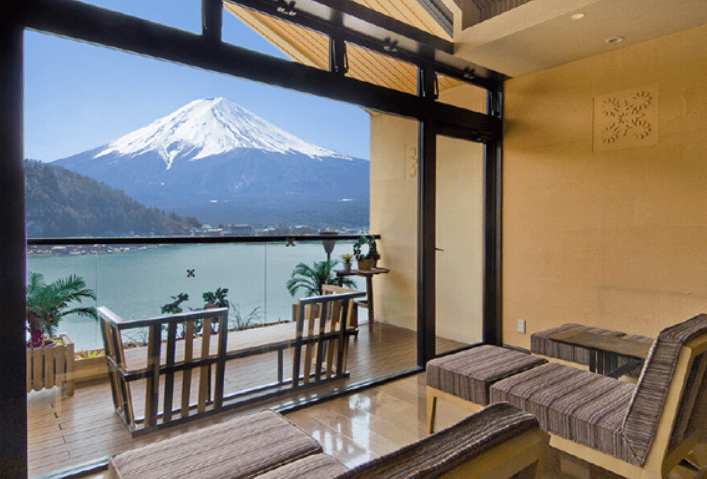 スーペリアクラスでも、全室にテラスが配されていて、お部屋から河口湖と富士山の美しいコラボを楽しむことができますよ。