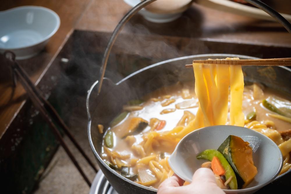 囲炉裏のある個室で味わう名物のほうとう鍋