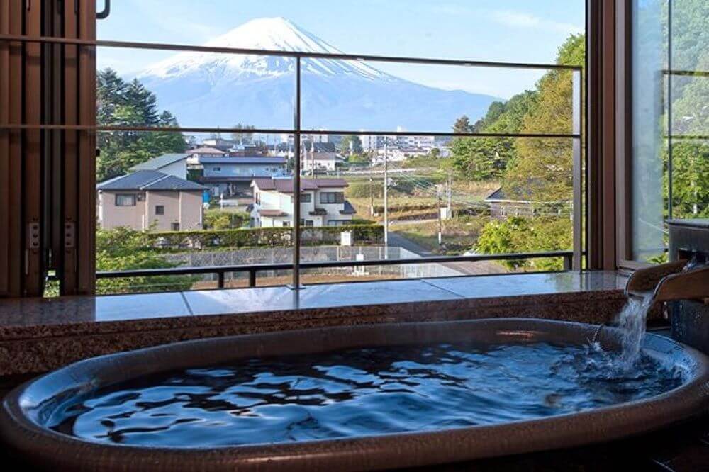 一部客室のテラスや窓際には富士山が見えるビューバスが付いており、お風呂につかりながら富士山を堪能することができますよ。