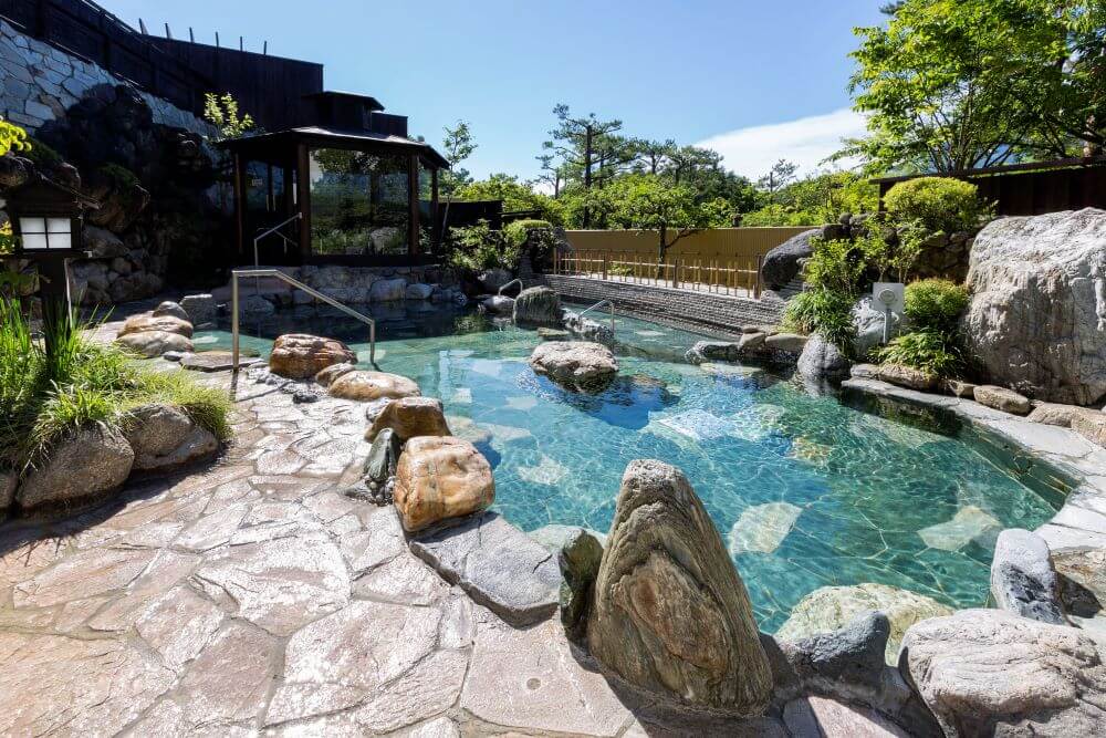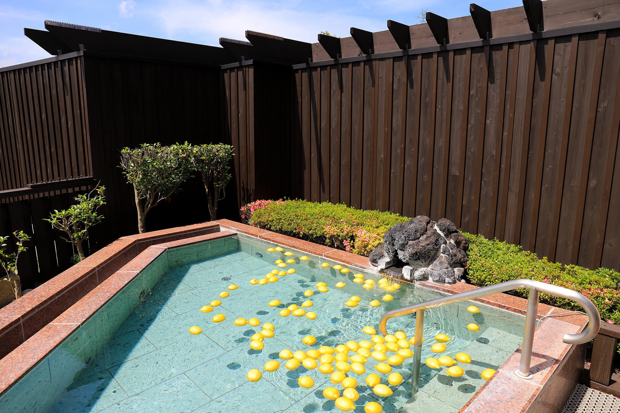「富士眺望の湯ゆらり」には16種類のお風呂がありますが、屋外には「変わり湯」になっているパノラマ風呂のほかに、「霊峰露天風呂」という富士山を望める大きな露天風呂があります。今日は梅雨の時期にもかかわらず晴れ間が見えています。雲は多いですが、タイミング次第で富士山も顔を出すかもしれません。せっかくの「露天風呂の日」ですから、「レモンの湯」と合わせて「霊峰露天風呂」も楽しみましょう。