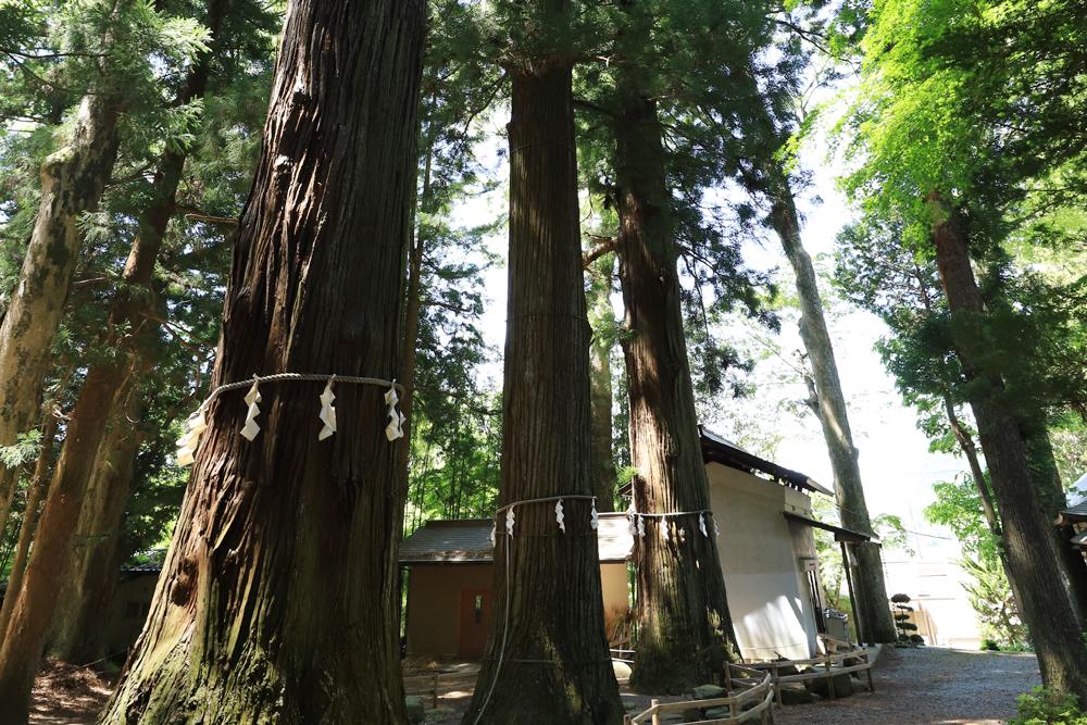 樹齢約1200年とされる杉の木は山梨県や富士河口湖町の天然記念物に指定。
