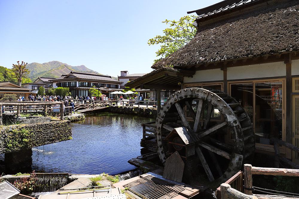 茅葺き屋根の建物や水車など日本の原風景が残る景観