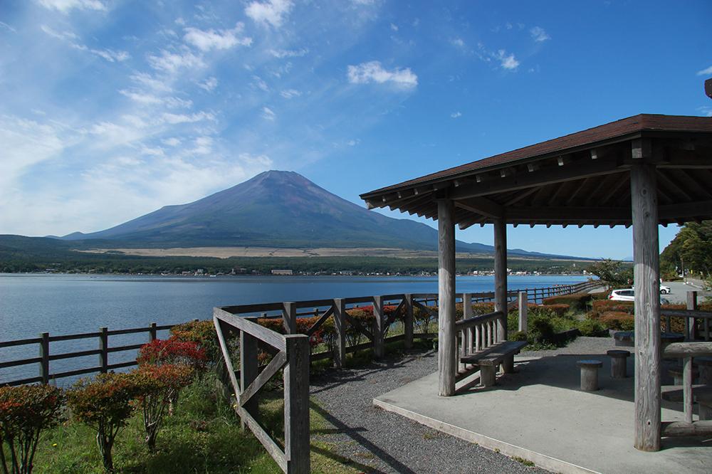 園内には東屋があり、富士山と山中湖を眺めながらゆっくりと過ごすことができます。
