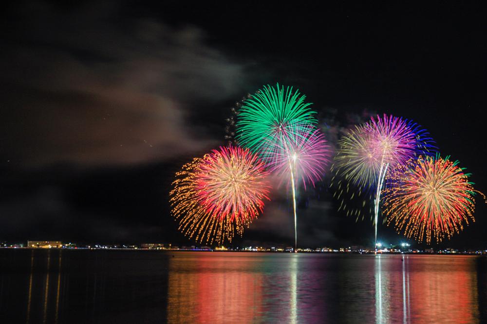 ・ 規模は約1万発で、湖畔のどこからでも花火を鑑賞可能。