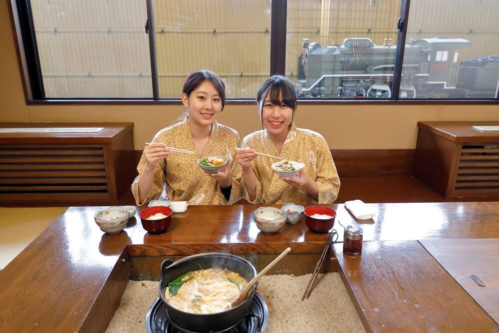お狩場には、ミニSLが料理を運んできてくれる、子供が喜ぶこと間違いなしのサービスもありますのでぜひ利用してみましょう。