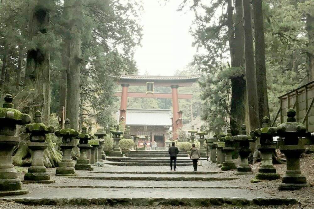 杉林に囲まれた参道の先にある荘厳な「富士山大鳥居」は思わず息をのんでしまうほどの大きさで、拝殿の装飾も見事です。
