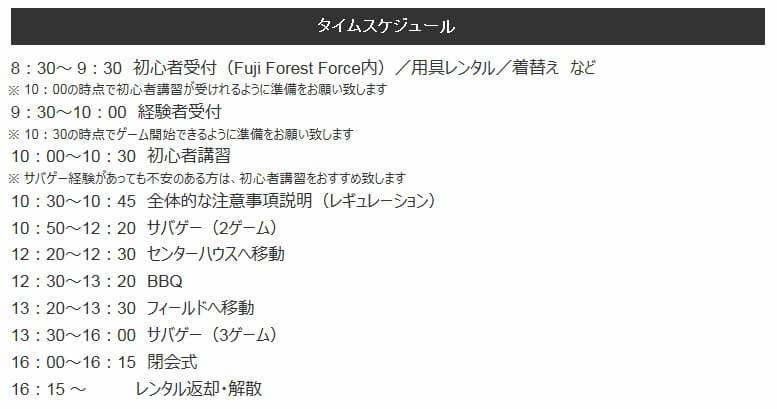 サバゲーイベントのタイムスケジュール