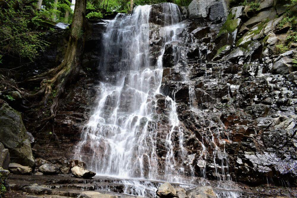 「河口浅間神社」のさらに奥にある「母の白滝」は、マイナスイオンたっぷりの神秘的な滝で、知る人ぞ知るパワースポットです。夏に見に行けば流れ落ちる水と豊かな自然の中で涼しむことができますよ。