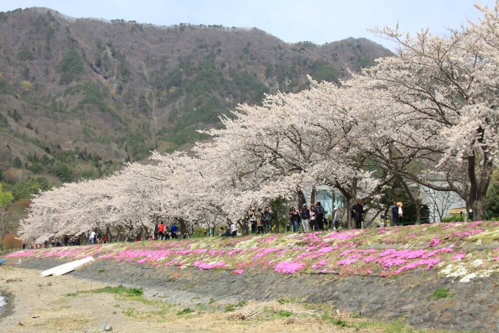 また、毎年行われる「河口湖さくら祭り」の期間中は出店なども立ち並び賑わいますよ。