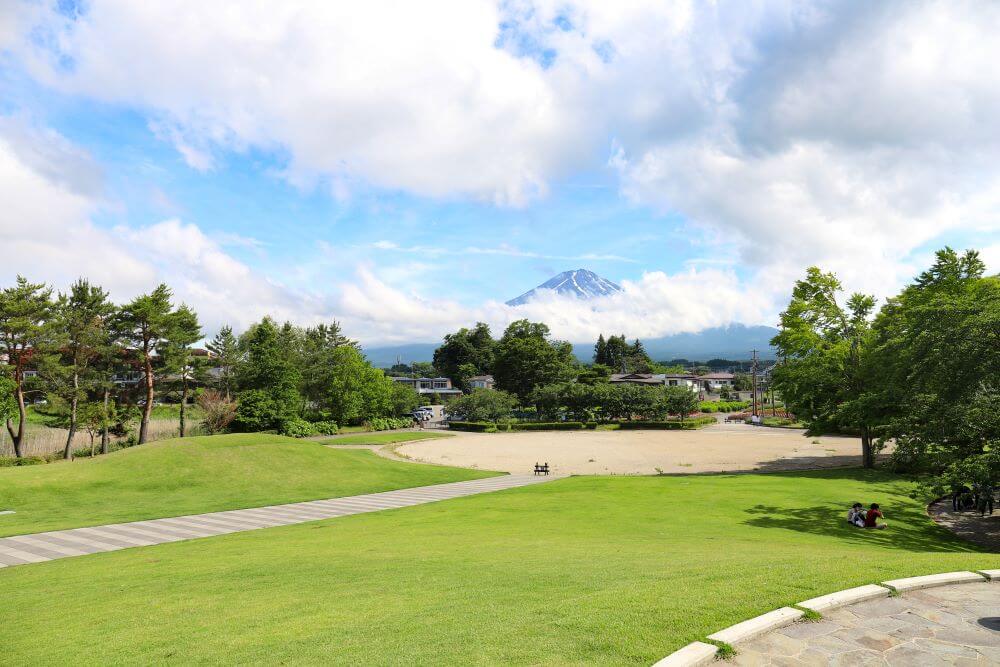 初夏のラベンダーが有名な公園で、河口湖越しの富士山ビュースポットとしても人気です。先に紹介した産屋ヶ崎と比べると、打ち上げ会場から距離があるため花火の迫力はやや劣りますが、その分撮影スポットとしては穴場です。落ち着いて花火を撮影できますよ。サブ会場の八木崎公園の花火も合わせてカメラに収めることができるのもポイントです。