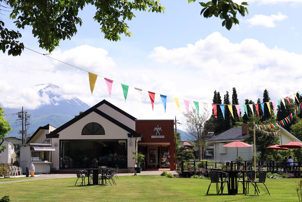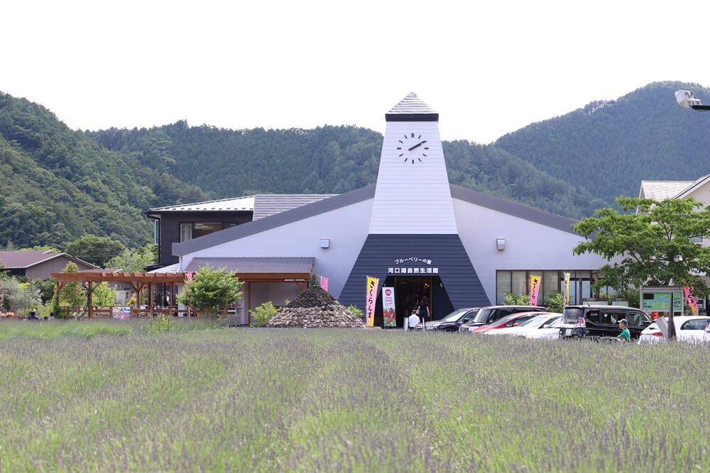 館内には河口湖と公園を一望できるカフェがあり、ここのラベンダーソフトクリームがオススメです。鮮やかな紫色のラベンダーを目で見て香りを楽しんだ後は、食べてみるのはいかがでしょうか。