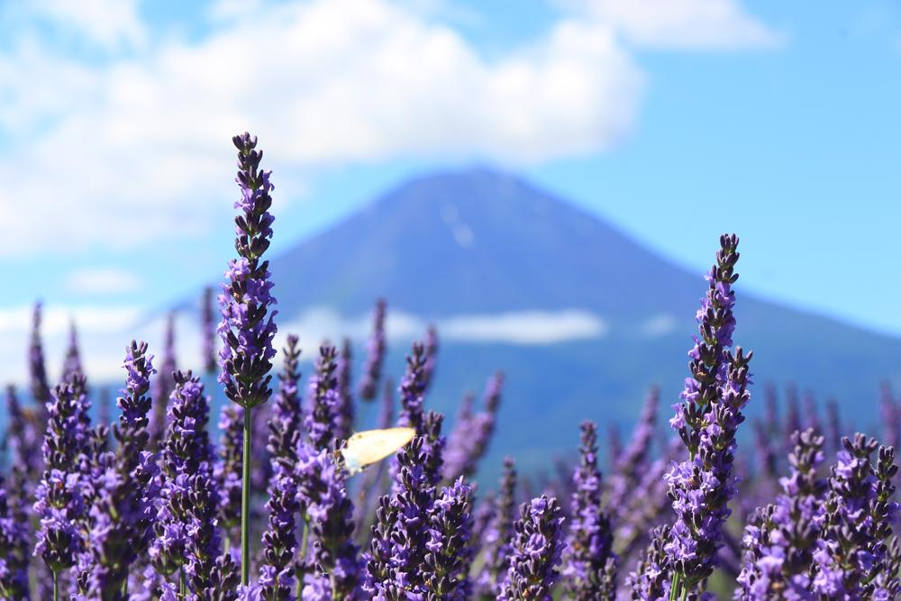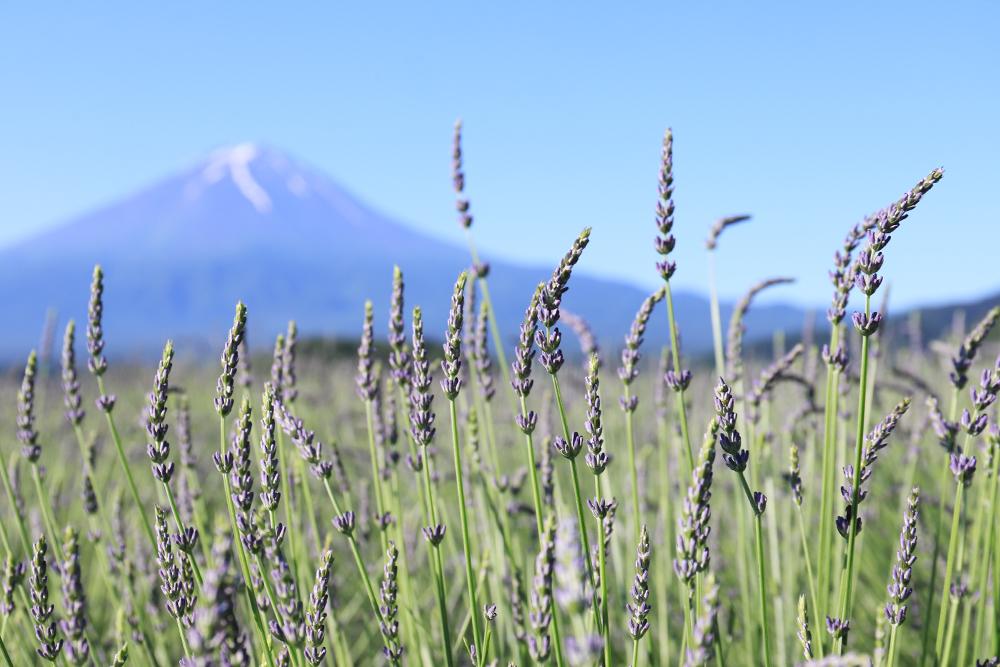 ラベンダーの多くが満開を迎え、河口湖大石公園では富士山の麓一面に紫色のじゅうたんを敷き詰めたような絶景を楽しむことができます。