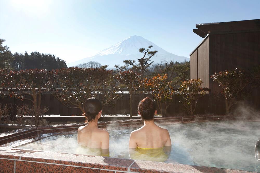 富士山を目の前にお風呂に浸かれる2種類の露天風呂の他、炭酸泉や洞窟風呂などお風呂の種類は全部で16種類。リラクゼーションルームやボディリフレッシュルームなどもあり、旅の疲れを癒せます。