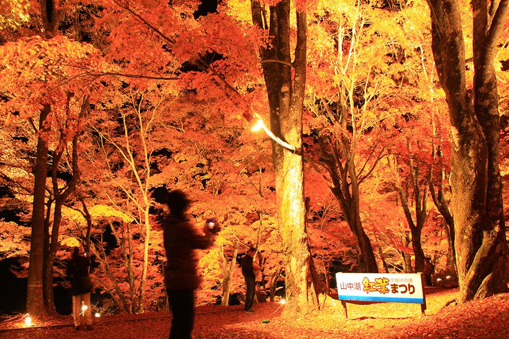 山中湖の紅葉ライトアップイベント「夕焼けの渚 紅葉まつり」