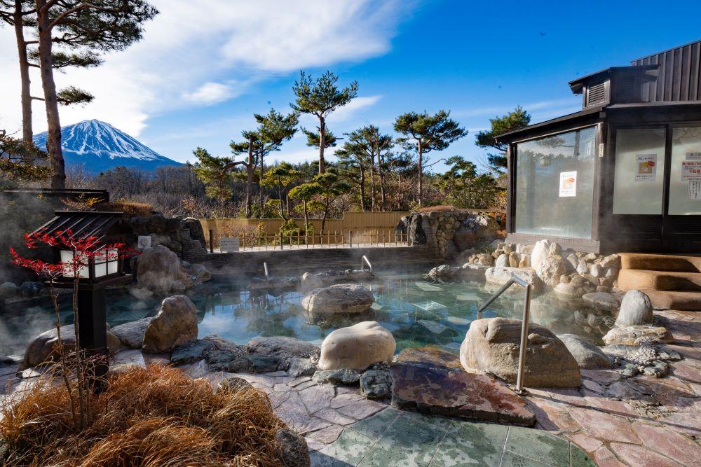 鳴沢村にある日帰り温泉「富士眺望の湯ゆらり」は雄大な富士山を眺めながらのんびりと癒されることができます。眺めの良い2つの露天風呂のほか、洞窟風呂など内湯もユニークなお風呂が充実し、全部で16種類のお風呂が楽しめます。
