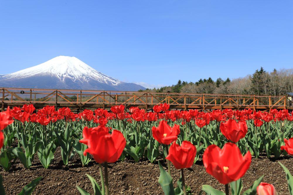 富士五湖エリアでも開花が遅いスポットを巡ります。フジザクラ・ソメイヨシノ・チューリップと、さまざまな種類の花が楽しめます。