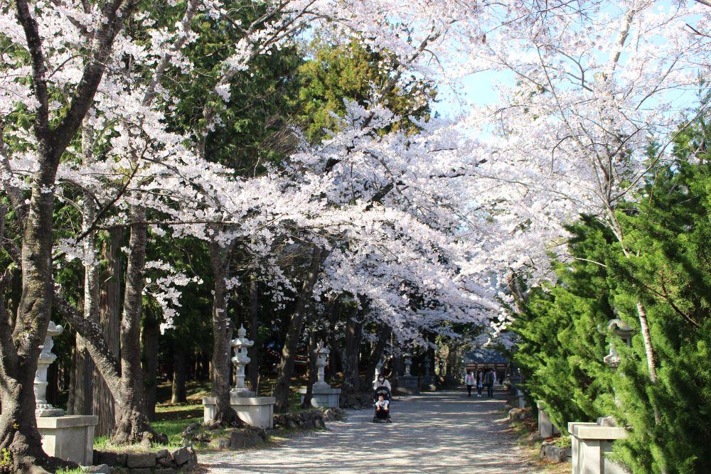 パワースポットとして河口湖に来たらぜひ参拝してほしい神社ですが、春は本殿へ続く表参道が桜のトンネルのようになり1年の中でも特に美しい景観が広がります。