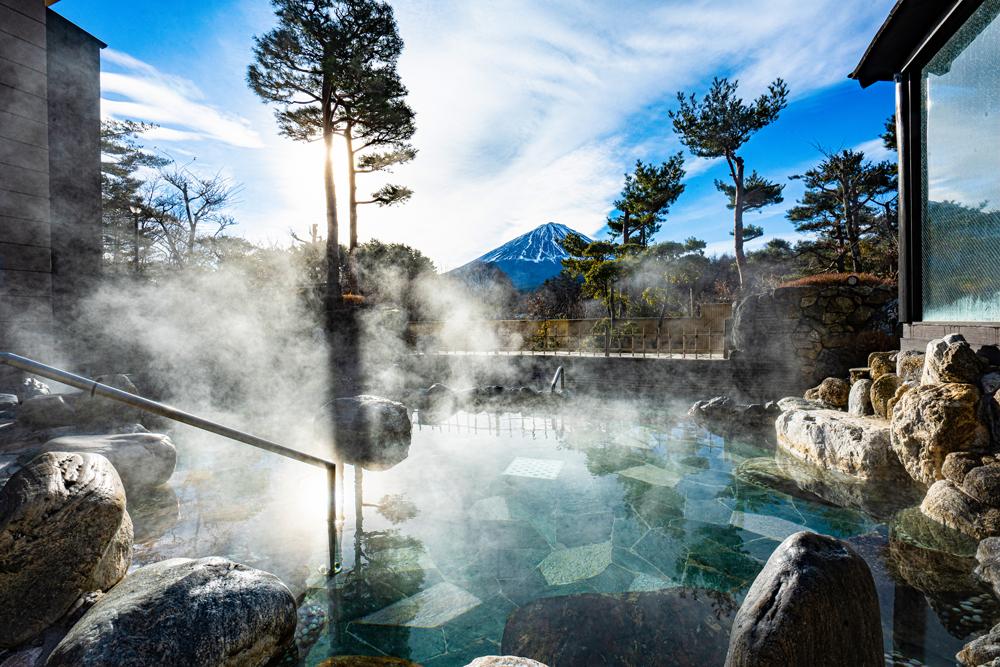 内湯からも露天風呂からも富士山を一望でき、富士山の地下1,500mの地層で育ったミネラル豊富な天然温泉を16種類のお風呂で満喫してください。