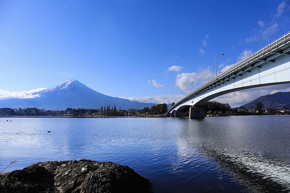 河口湖大橋からは河口湖と周辺の山々、そして雄大な富士山を一望することができます。