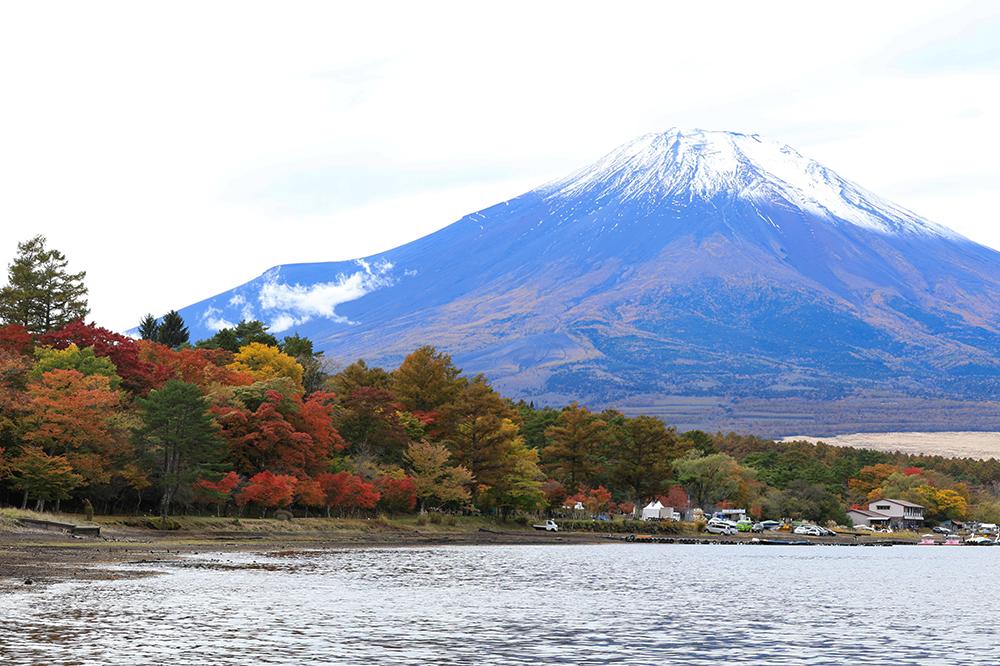 富士五湖の湖の中で最も富士山に近い(標高が高い)山中湖では、四季折々の自然とダイナミックな富士山のコラボレーションを楽しむことができます。中でも秋になると、冠雪が進む富士山と色鮮やかな紅葉のコントラストが美しく、その景色を目当てに世界中から観光客が訪れるシーズンです。