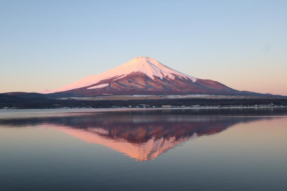 長池親水公園は、山中湖と富士山を一望できる写真スポットとしても名高く、空気が澄んだ晴天の早朝が紅富士を写真に収めるチャンスです。