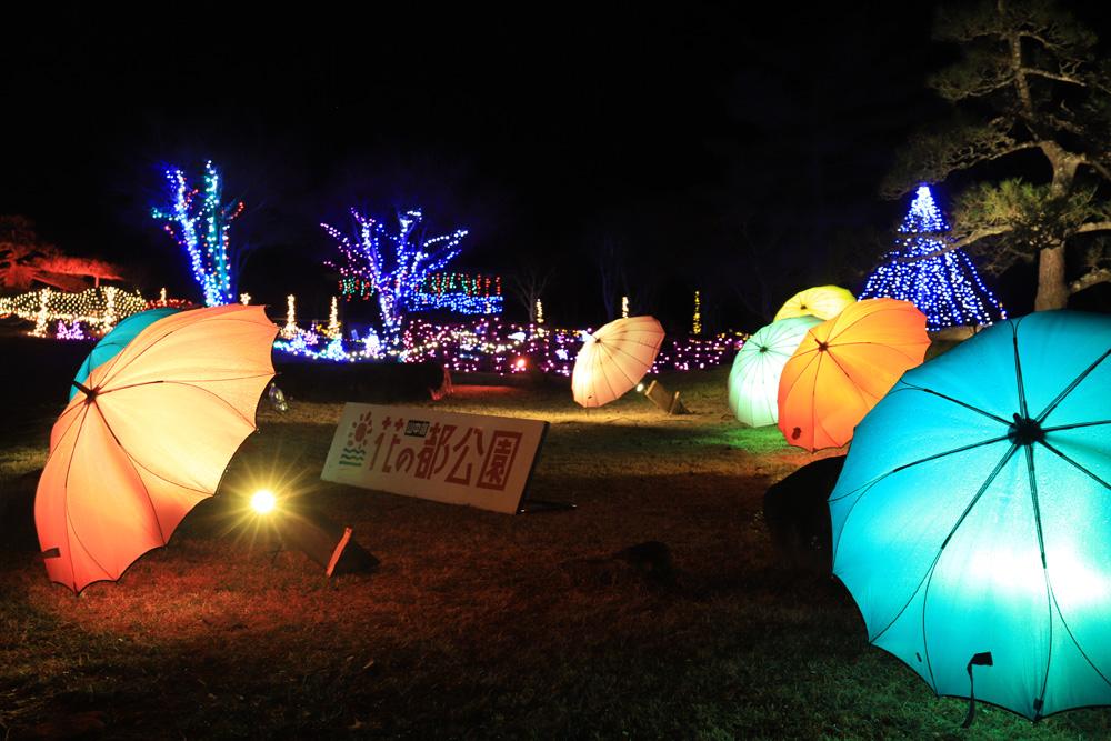 傘の中や、竹の中に無数の明かりが灯り、冬の澄んだ空気を感じながら幻想的な風景を楽しめます。